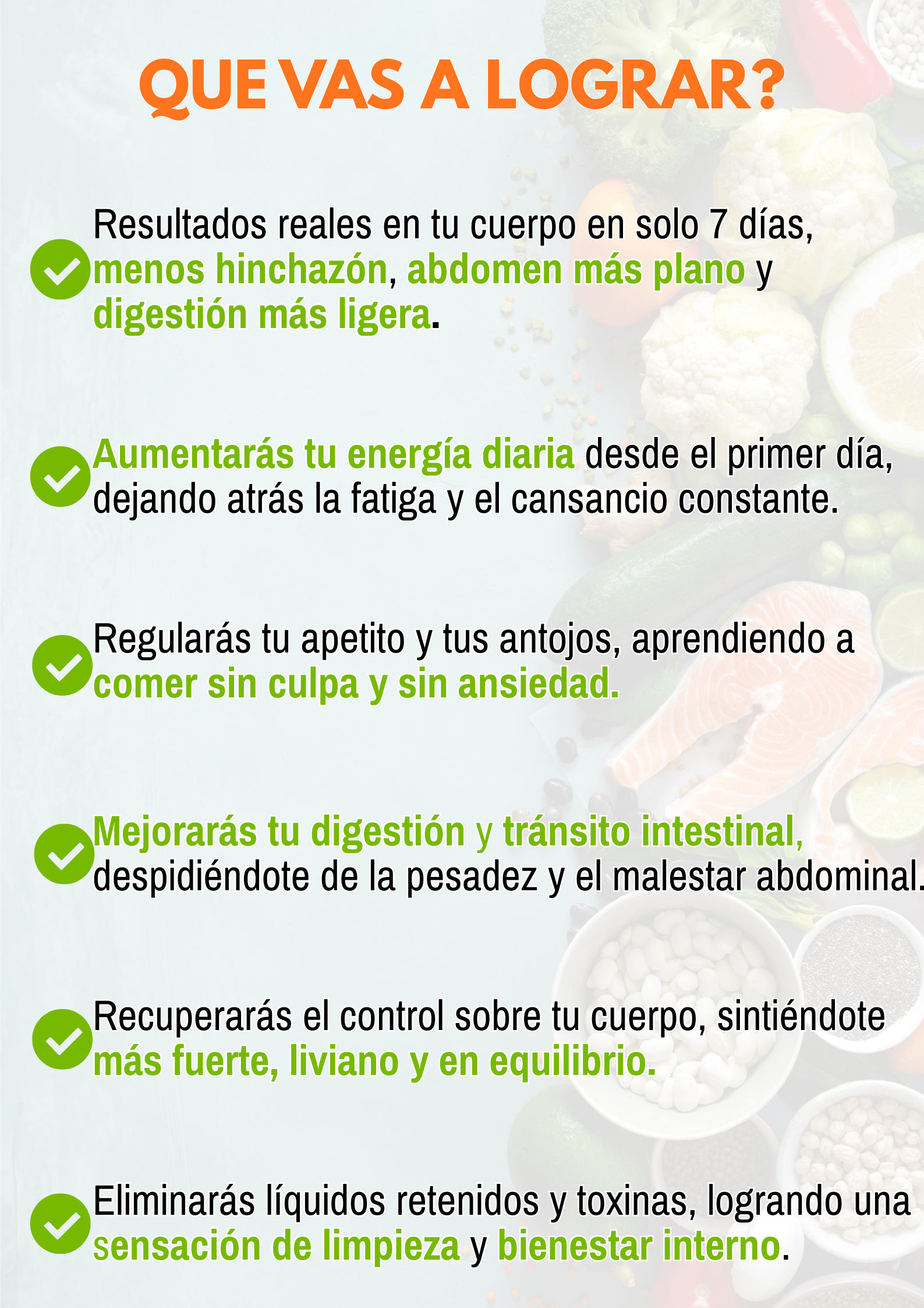 La mayoría de quienes lo ponen en práctica notan cambios en su cuerpo y energía en los primeros 7 días: menos hinchazón, mejor digestión y sensación de ligereza. Si mantenés los hábitos, los resultados se potencian semana a semana.